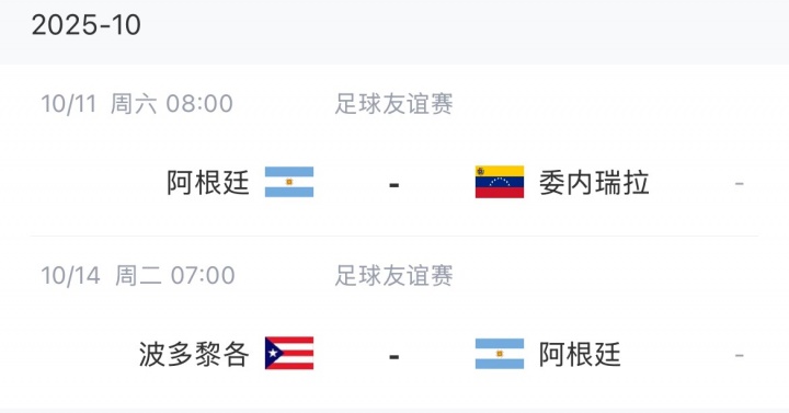 阿根廷將于10月11日對陣委內(nèi)瑞拉,在14日對陣委內(nèi)瑞拉。